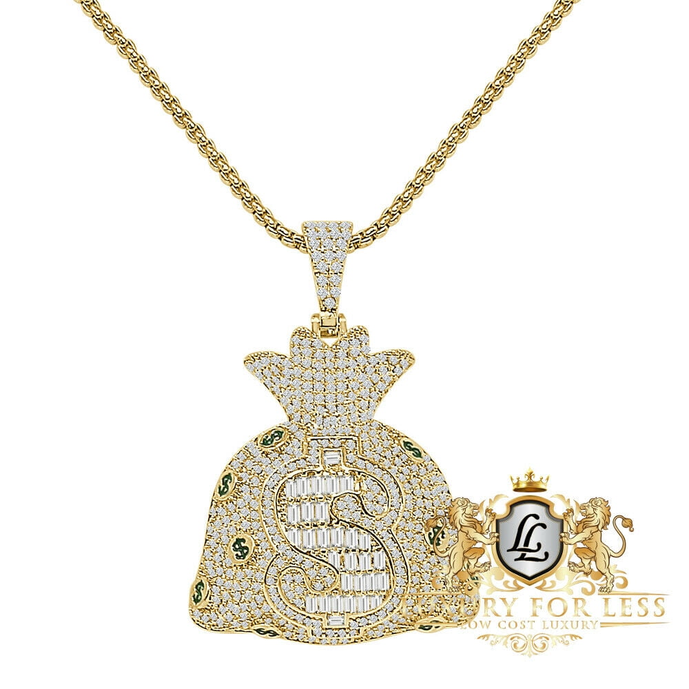 Men S Baguette 14k Gold Over Simulated Diamond Money Bag Charm Pendent Chain Set Walmart Com